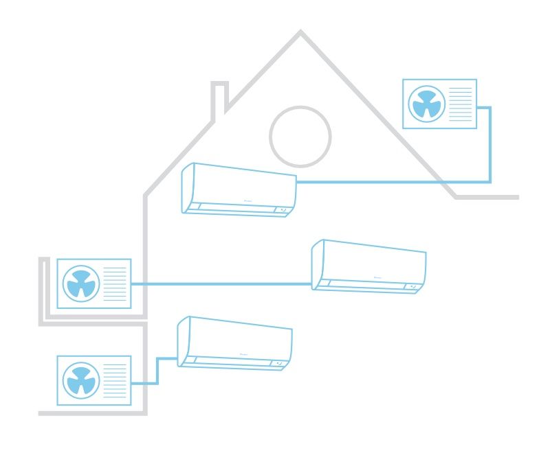 Multi-Split-Systeme hingegen ermöglichen die Klimatisierung mehrerer Räume mit nur einer Außeneinheit. Dies bietet eine kostengünstige Lösung für Kunden, die mehrere Räume in ihrem Zuhause oder Unternehmen klimatisieren möchten, ohne separate Außeneinheiten installieren zu müssen.