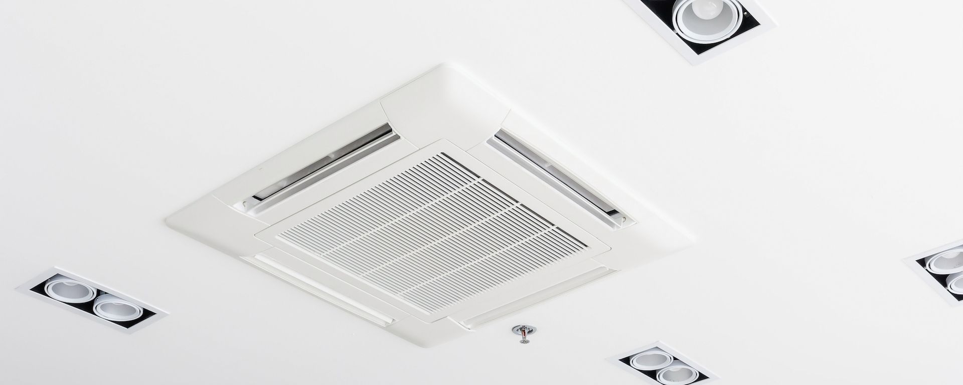 Decken- oder Kassettengeräte werden an der Decke oder in Zwischendecken bzw- abgehängten Decken montiert und sorgen für eine gleichmäßige Verteilung der gekühlten oder erwärmten Luft im Raum.