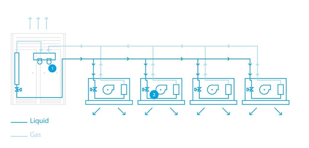 VRF/VRF-Anlagen verwenden eine variable Menge an Kältemittel, um die Kühl- oder Heizleistung an die tatsächlichen Bedürfnisse der einzelnen Räume anzupassen. Dies führt zu einer präzisen Temperaturregelung, einer verbesserten Energieeffizienz und geringeren Betriebskosten.