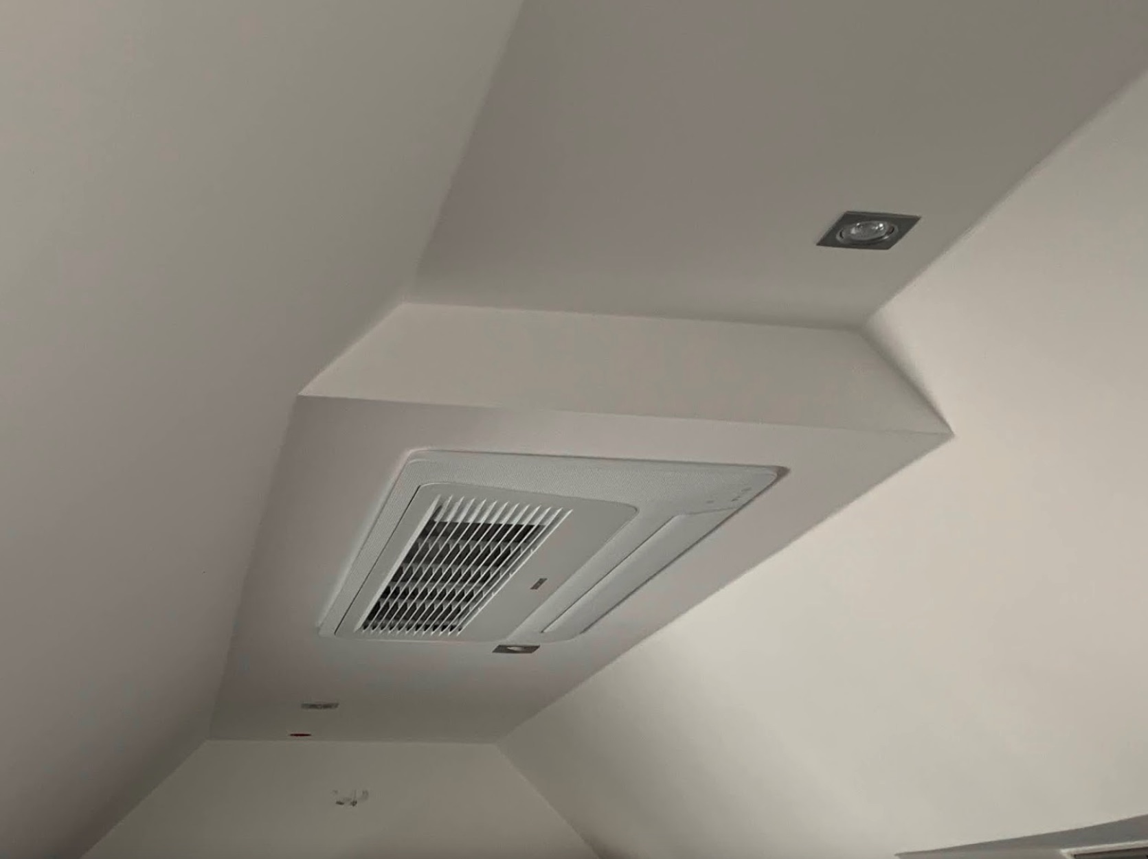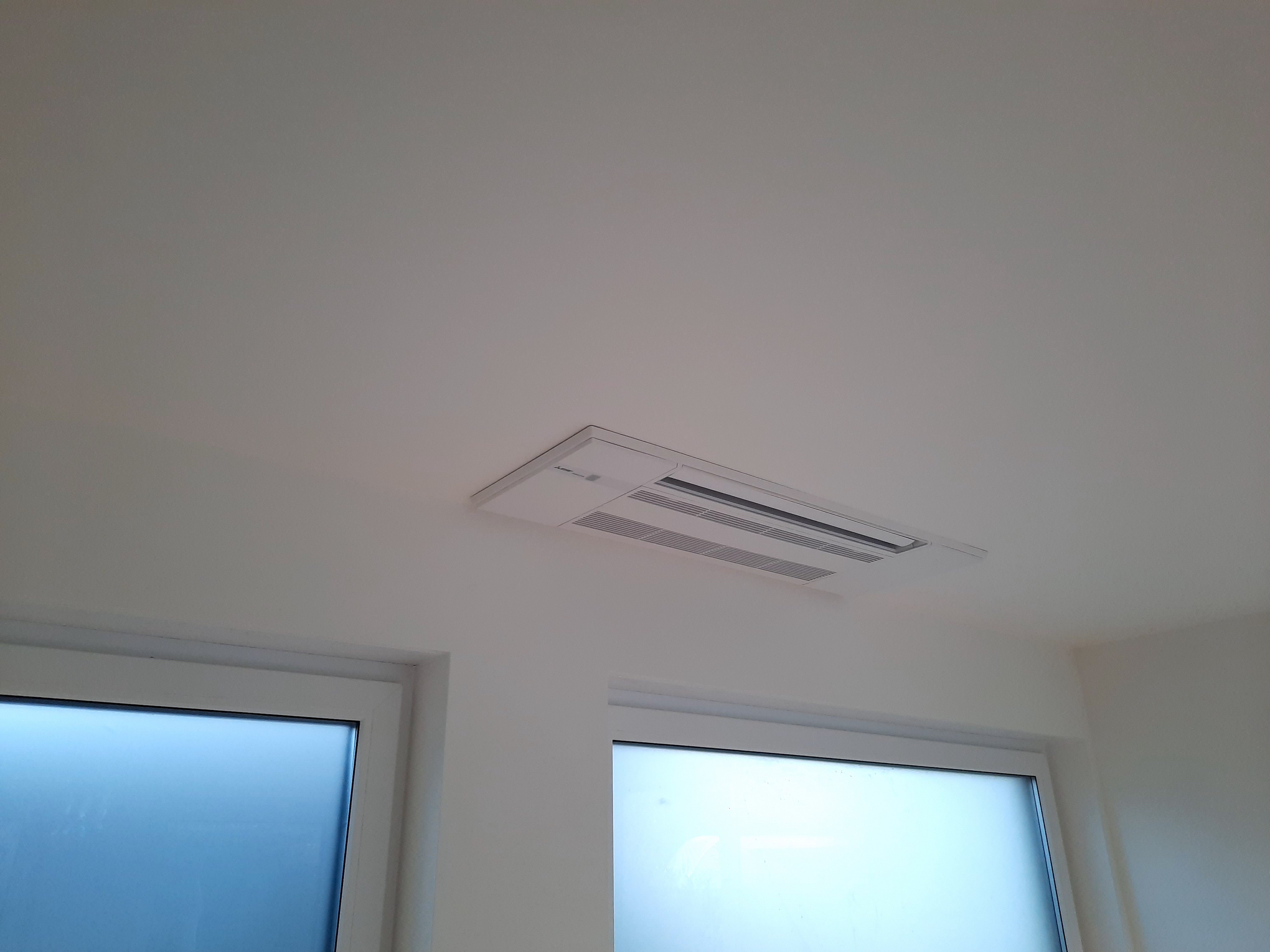 Decken- oder Kassettengeräte werden an der Decke oder in Zwischendecken bzw- abgehängten Decken montiert und sorgen für eine gleichmäßige Verteilung der gekühlten oder erwärmten Luft im Raum.